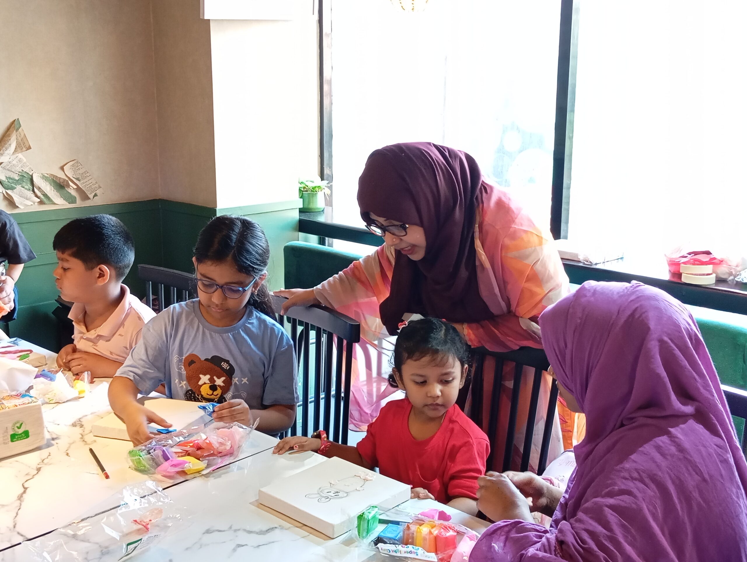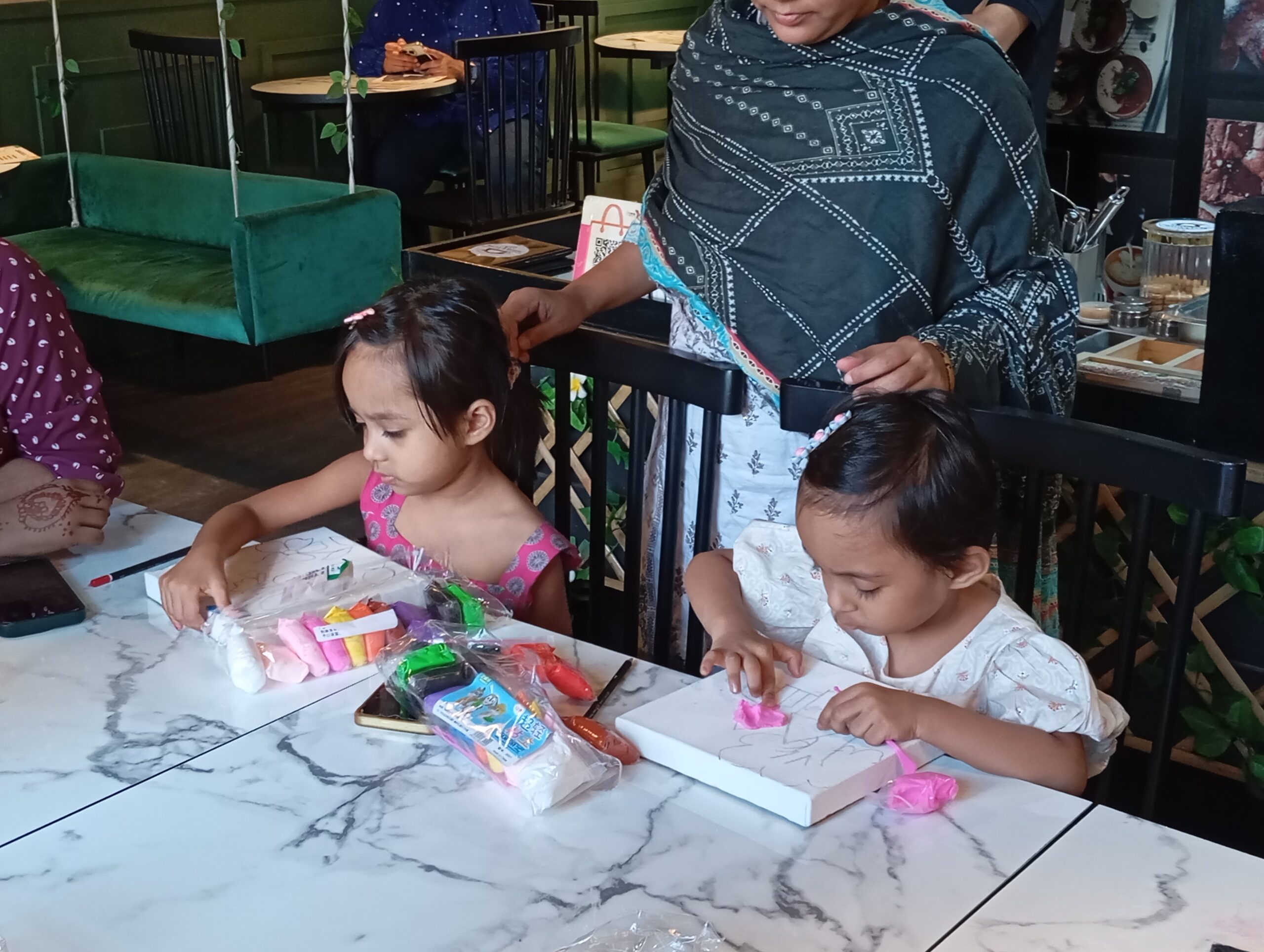 For a nominal fee, 232 participants in 11 workshops received: Free entry to Play Land, A special gift, and Free canvas and clay materials. Unlike traditional drawing methods, this workshop encourages participants to think differently by combining sculpting and painting techniques on a canvas surface. It’s designed not only as a creative outlet but also as a playful learning experience.